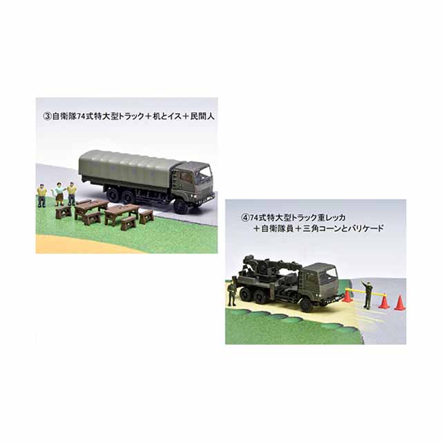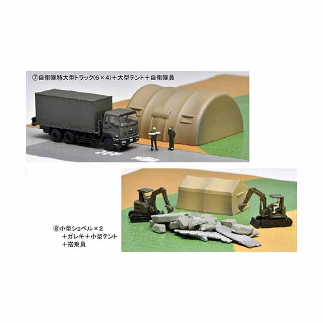 お手軽に「自衛隊防災訓練現場」をイメージした、情景ジオラマがお楽しみいただけます。