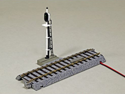 ・直線線路のS123と同じ長さの線路(木枕木仕様)の左側面に、3灯式信号機を設置。
